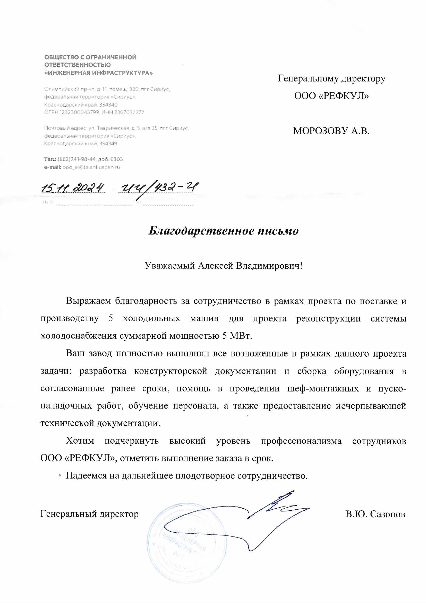 Pавод «РЕФКУЛ» входит в ГК «ТЕРМОКУЛ»  вместе с компаней «ТЕРМОКУЛ».